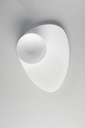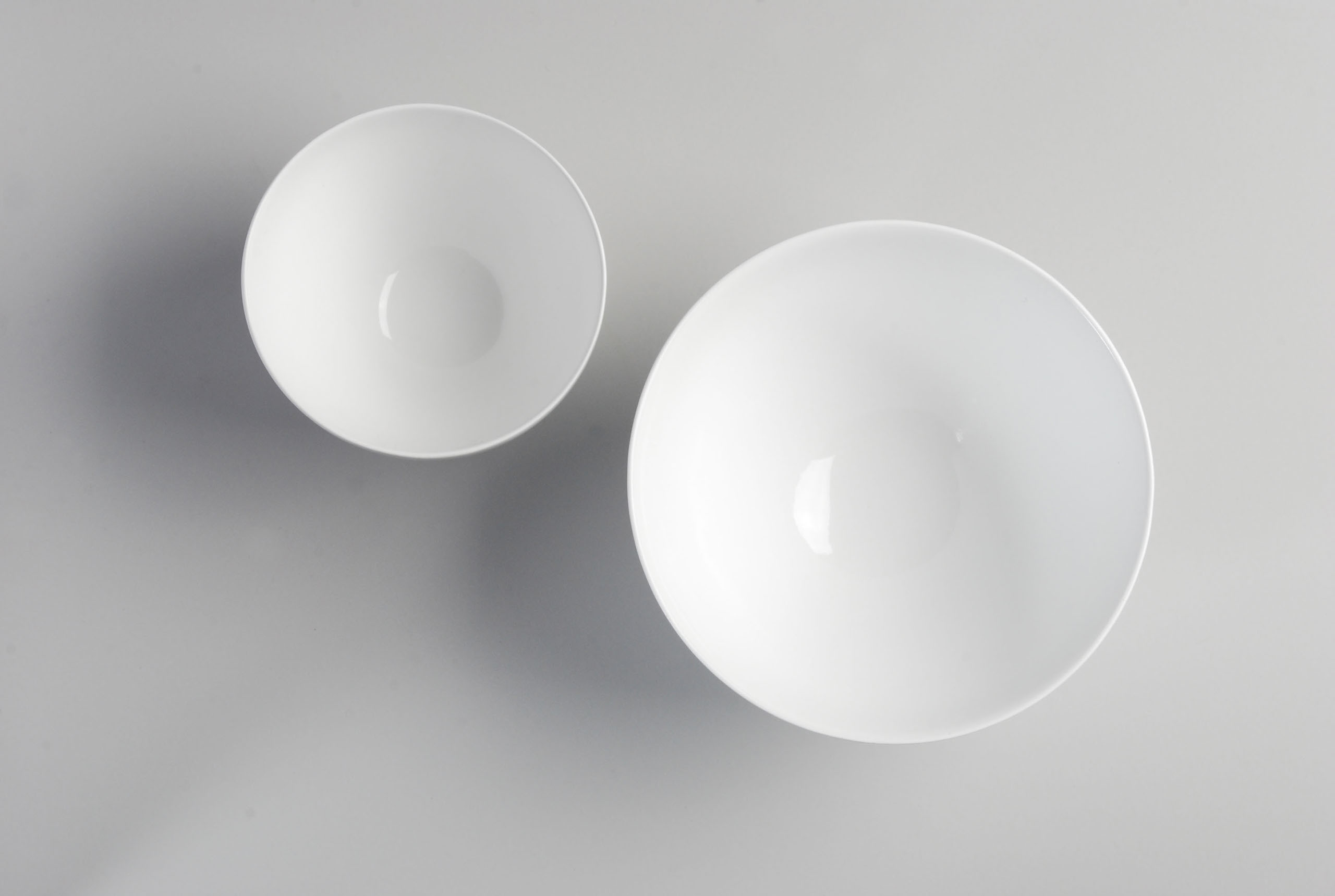 The design of the plates covers a span between still and motion. The top side is formed with a slightly concave area that becomes plain while the bottom side elevates the whole object from the table and gives the impression as if the dinnerware is frozen in a floating movement.