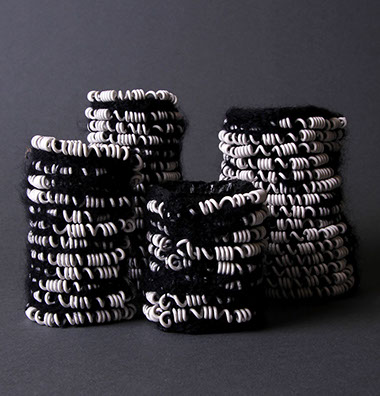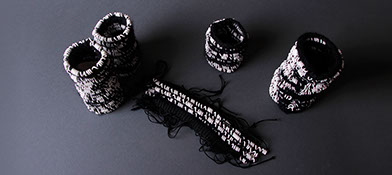 Black and white, heavy and light, hard and soft: a textiledesign study made from mohairwool and wire.