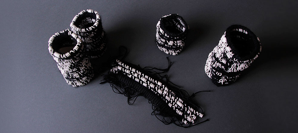 Black and white, heavy and light, hard and soft: a textiledesign study made from mohairwool and wire.