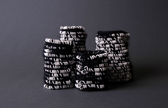 Schwarz weiß, schwer leicht, hart weich: Textildesignstudie aus Mohairwolle und Klingeldraht.