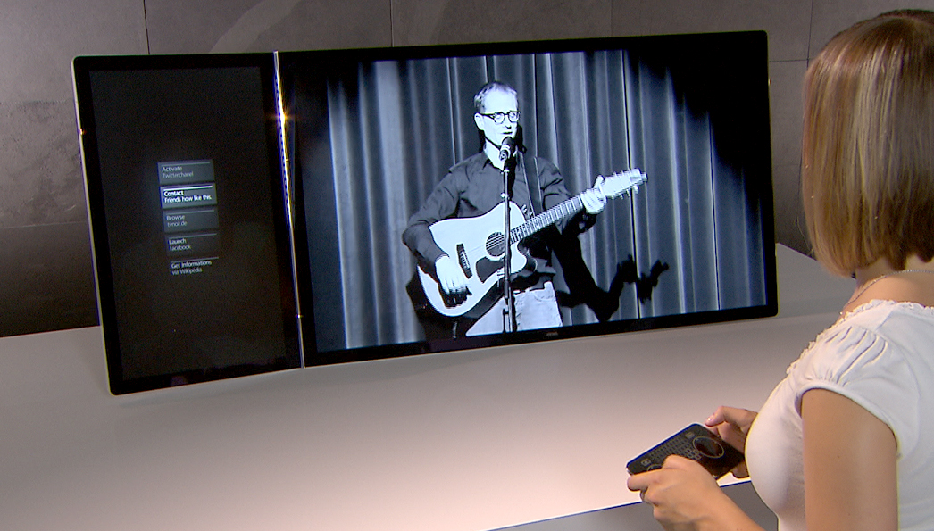 Die Zukunft von Home Entertainment: Multiplayer oder Serientweeter? Welche faszinierenden Nutzungsszenarien wären mit zwei Anzeigen in einem Gerät denkbar? In dieser aufwändigen Technologiestudie sind einige dargestellt.